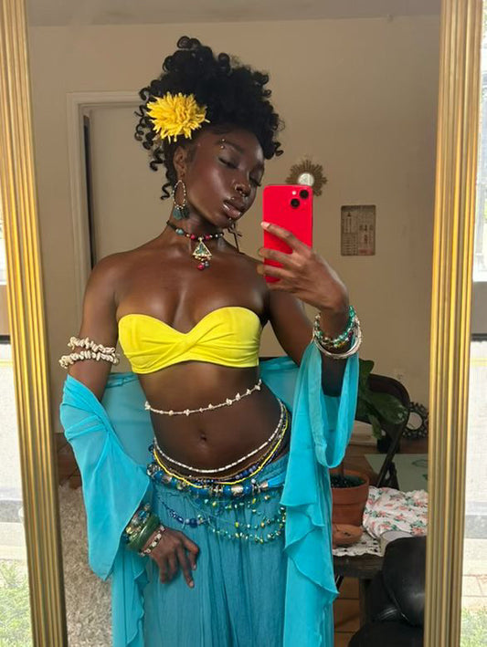 Whether I vacation or not, as soon as the temperature goes up, mentally I am SOMEWHERE tropical. Because for me, nothing screams summer LOUDER than a gentle ocean breeze on a hot day and a fruity drink in-hand. Now, whether you like a good drink or not is up to you! BUT I think we can all agree that the blissful energy of the summer is one of a kind! That energy is exactly what I replicated for this collection, because I know I'm not the only one in my Island Gyal era right now <3